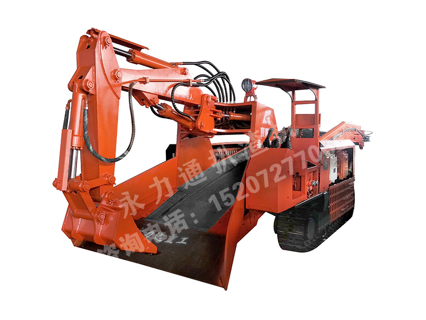 斜巷專用履帶式扒渣機能在≦25°坡上行走自如、轉場靈活。且與大容量運輸設備配套后,成倍縮短了出矸時間,大幅度減少了工人數(shù)量及降低勞動強度。
